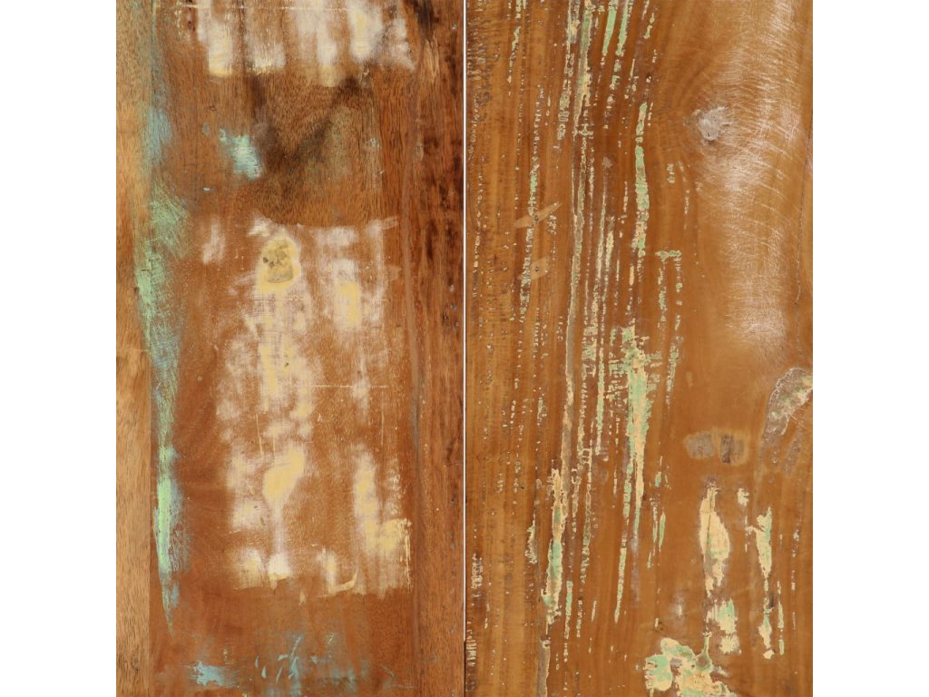 - Materiál: masivní recyklované dřevo a ocel s práškovým nástřikem