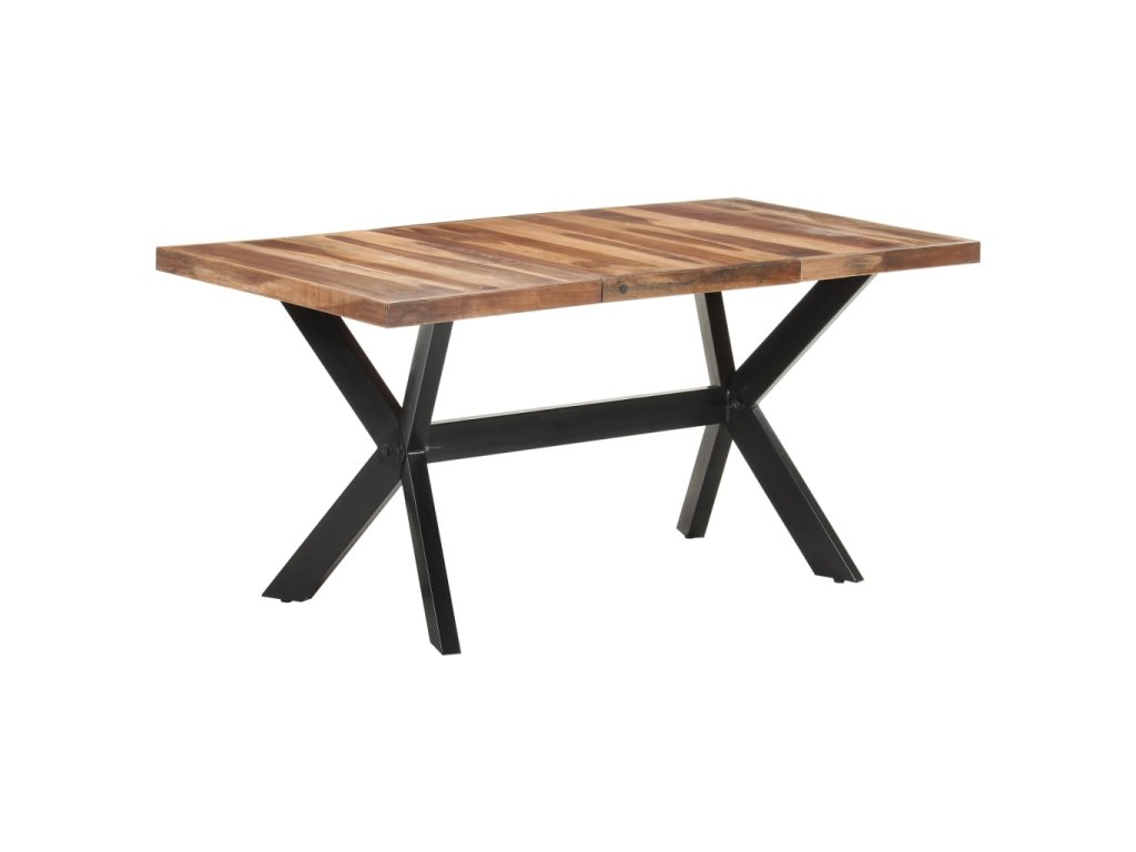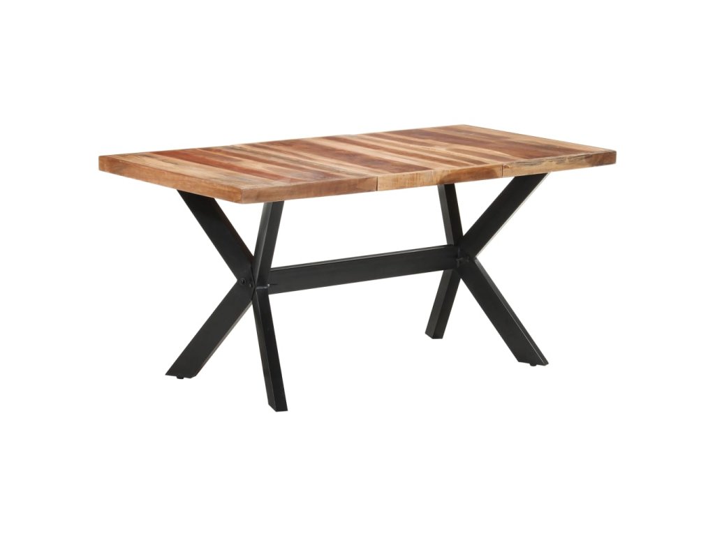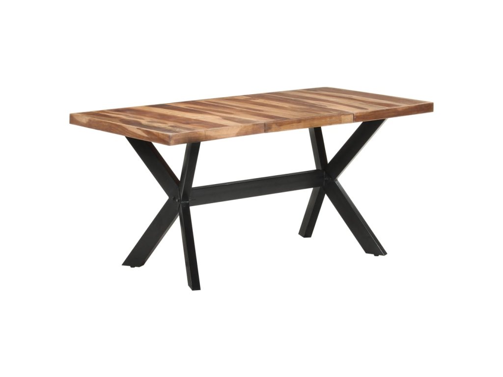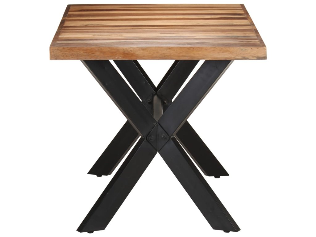 Jídelní stůl je zhotovený z masivní akácie a kaučukovníkového dřeva s medovou povrchovou úpravou. Stůl je celý ručně dělaný a každá fáze jeho výroby je prováděna s mimořádnou péčí, ať už se jedná o leštění, natírání anebo lakování. Ocelové nohy dotvářejí industriální vzhled a spolu s ocelovým křížovým rámem přispívají k robustní konstrukci.