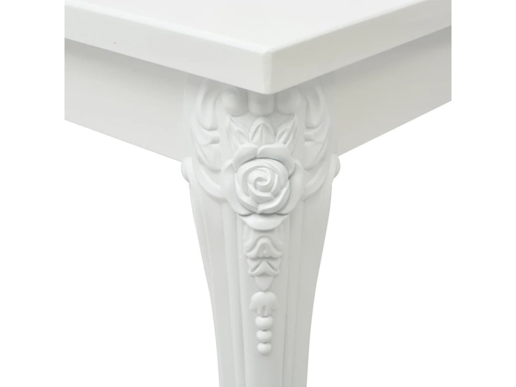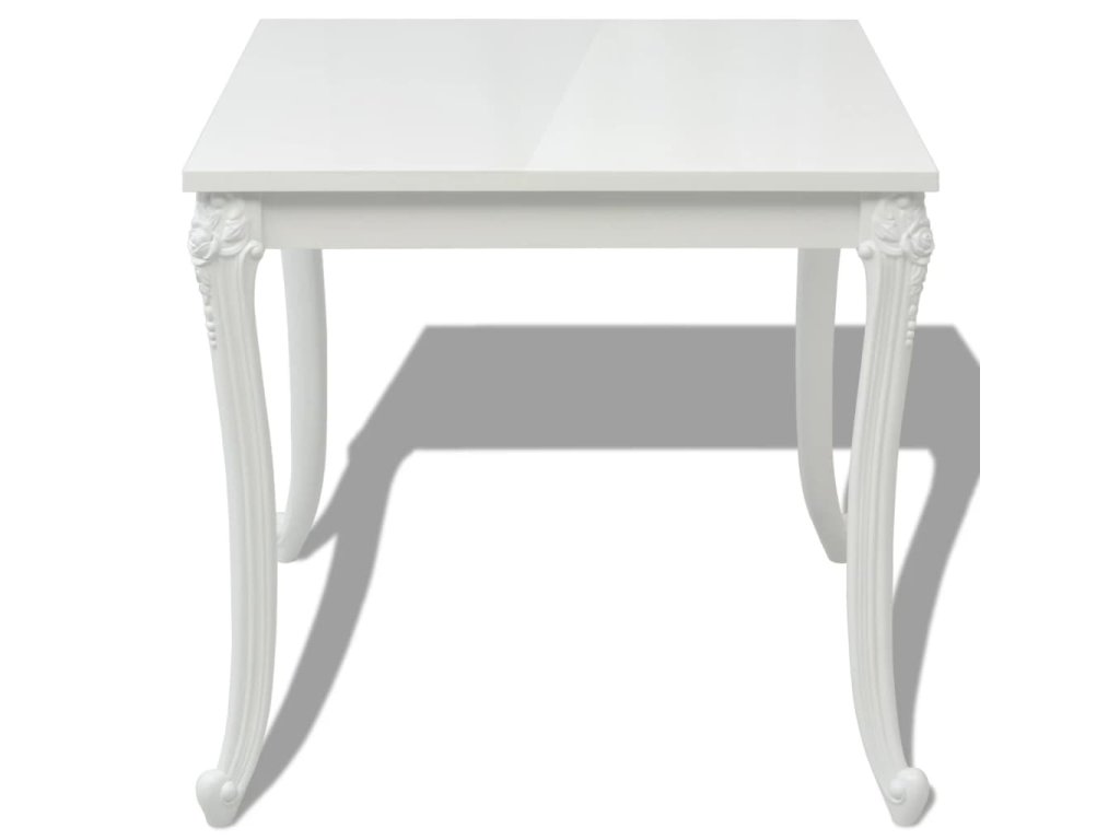 Bílý povrch s vysokým leskem odráží světlo, což přispěje k vašemu celkovému požitku ze stolování. Tento jídelní stůl je vyroben z dřevovláknité desky se střední hustotou (MDF). Má čtyři robustní nohy z lehkého plastu.
