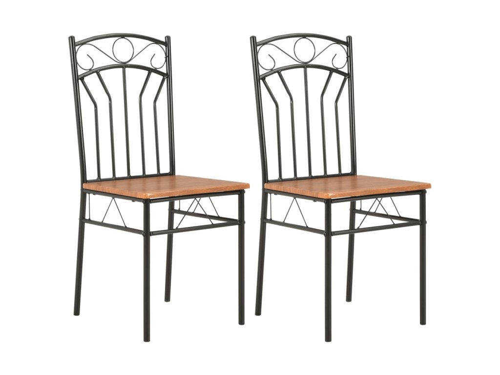 Industriálně vyhlížející židle jsou vyrobené z 15 mm silné desky MDF a vysoce kvalitní oceli, což jim zajišťuje mimořádnou stabilitu a odolnost. Hladká povrchová lazura také usnadňuje čištění nábytku. Ergonomický tvar židlí vám při sezení poskytne maximální pohodlí.