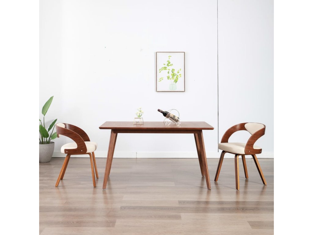 Jídelní židle 2 ks krémové ohýbané dřevo a umělá kůže 283102