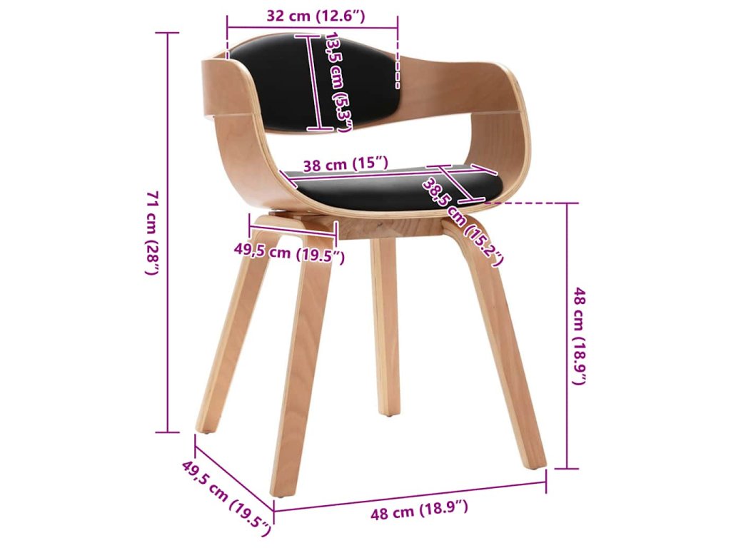 Jídelní židle je potažená umělou kůží a dobře polstrovaná, aby se vám na ní co nejlépe sedělo. Robustní rám z ohýbaného dřeva zdůrazňuje její jedinečnou krásu a styl. Vzhledem k ergonomickému tvaru židle se na ní můžete pohodlně uvelebit i na celé hodiny. Jedná se o perfektní volbu ke stolování, povídání, čtení, sledování televize nebo jen tak k odpočinku.