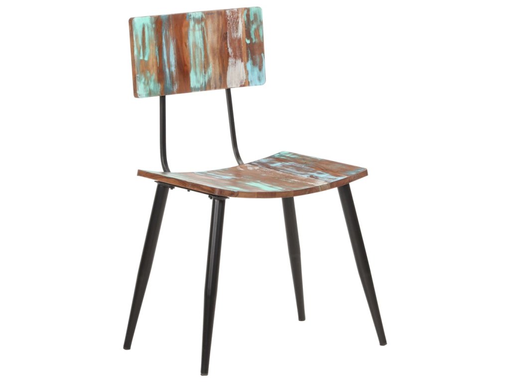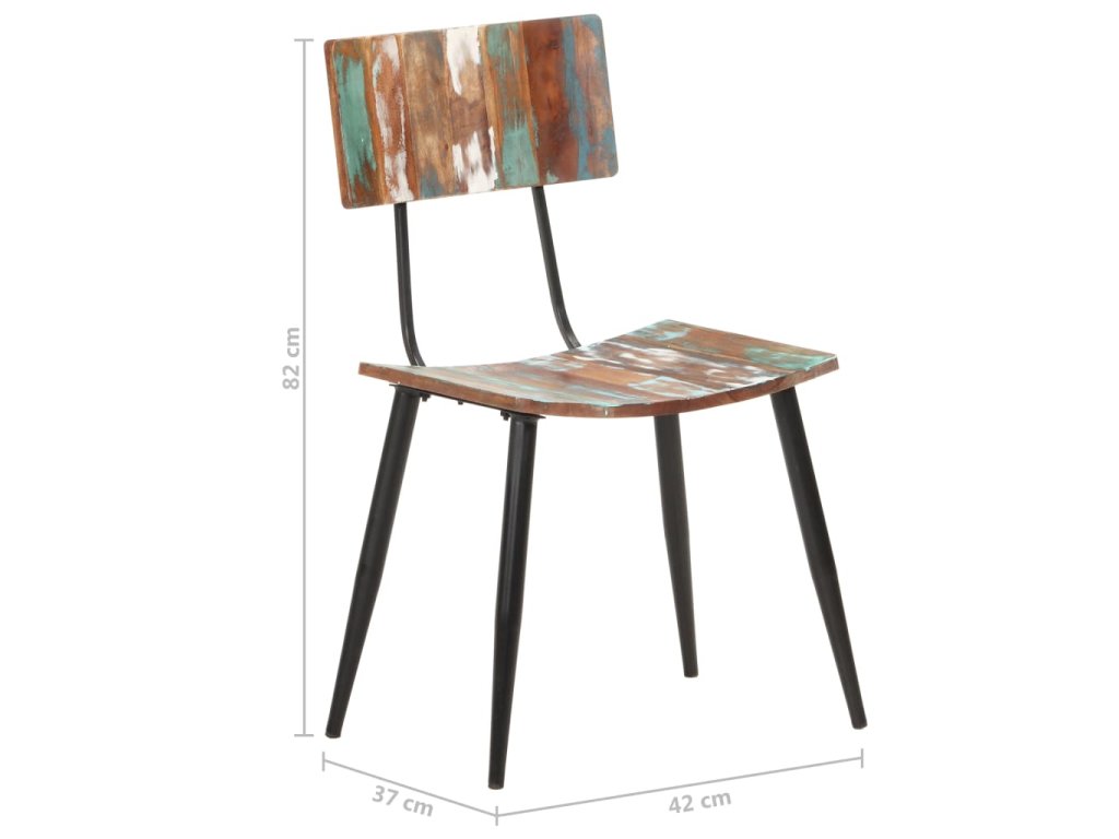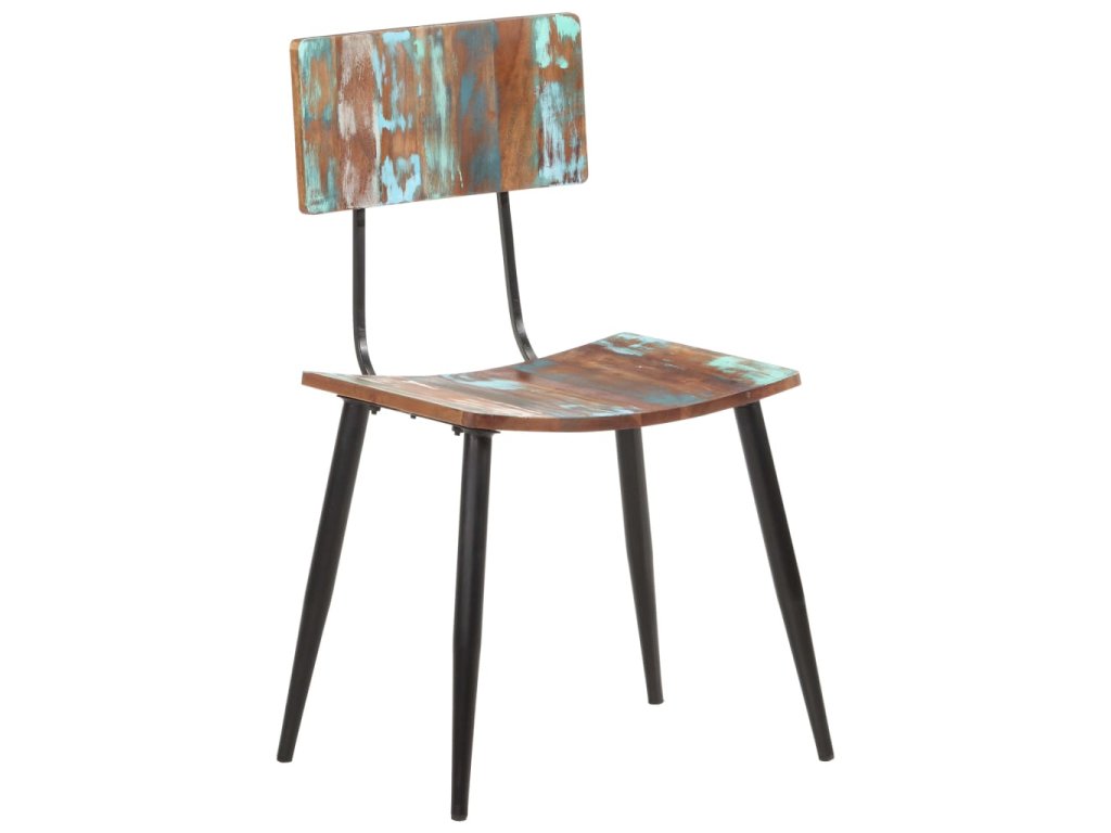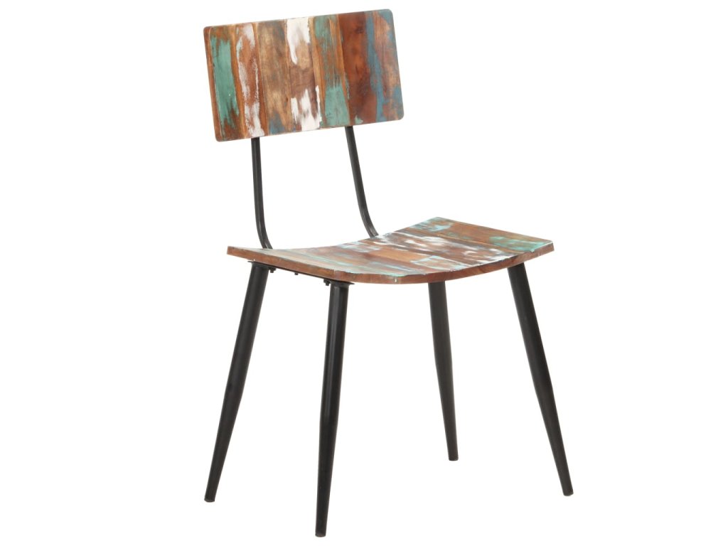 Tyto židle jsou vyrobeny z masivního recyklovaného dřeva, což znamená, že každý kus nábytku je jedinečný a mírně odlišný od ostatních. Nábytek je vyrobený z recyklovaného dřevo, které má charakteristiky různých druhů dřeva, jako je teak, mangovník a akácie. Recyklované dřevo je pevné, stabilní, odolné a krásné. Známky opotřebení a zřetelná kresba dřeva zase vypovídají o bohaté historii a každému kusu dodávají autentický vzhled. Tato sada židlí je ručně vyrobená a každý krok výrobního procesu je prováděn s nejvyšší péčí. Vícebarevná povrchová úprava podtrhuje jejich velkolepý retro styl.