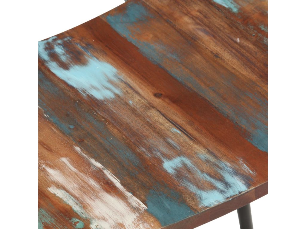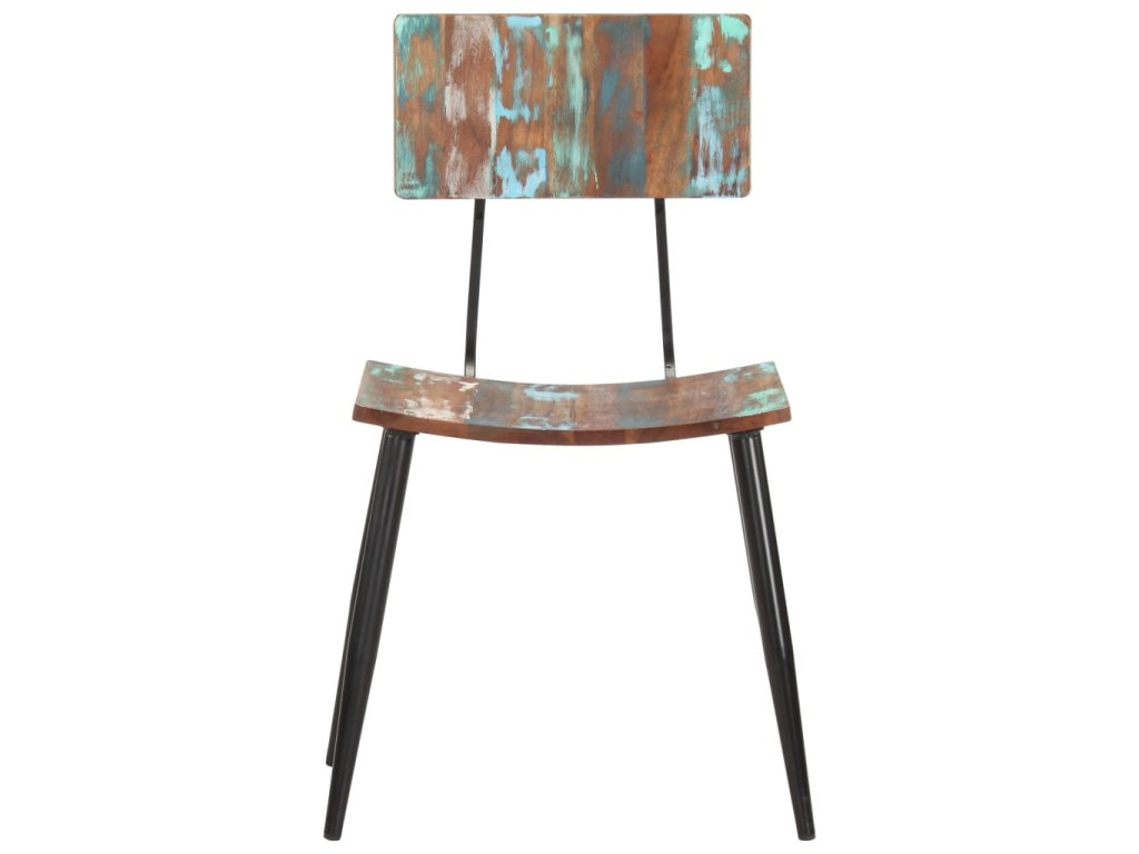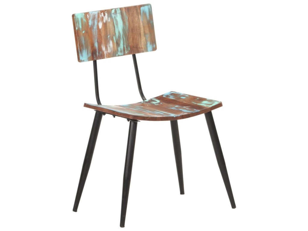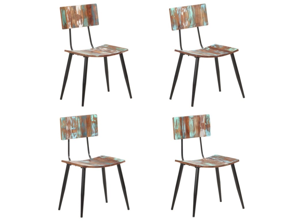 Tyto židle jsou vyrobeny z masivního recyklovaného dřeva, což znamená, že každý kus nábytku je jedinečný a mírně odlišný od ostatních. Nábytek je vyrobený z recyklovaného dřevo, které má charakteristiky různých druhů dřeva, jako je teak, mangovník a akácie. Recyklované dřevo je pevné, stabilní, odolné a krásné. Známky opotřebení a zřetelná kresba dřeva zase vypovídají o bohaté historii a každému kusu dodávají autentický vzhled. Tato sada židlí je ručně vyrobená a každý krok výrobního procesu je prováděn s nejvyšší péčí. Vícebarevná povrchová úprava podtrhuje jejich velkolepý retro styl.