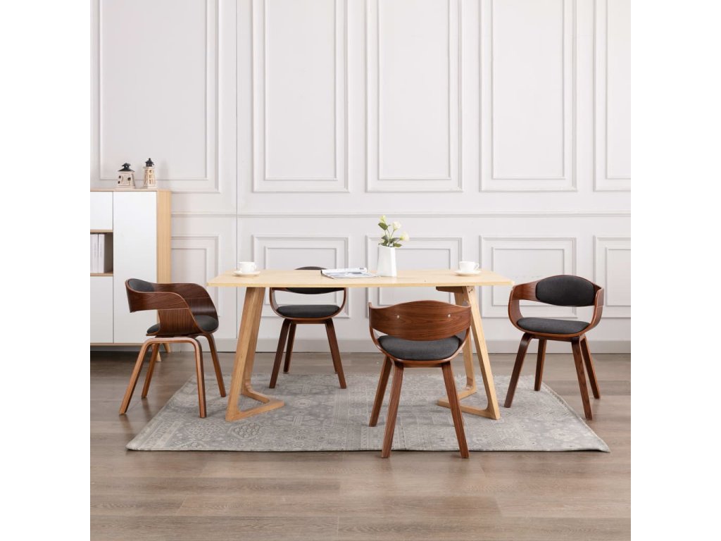 Jídelní židle 4 ks ohýbané dřevo a šedý textil 3054820