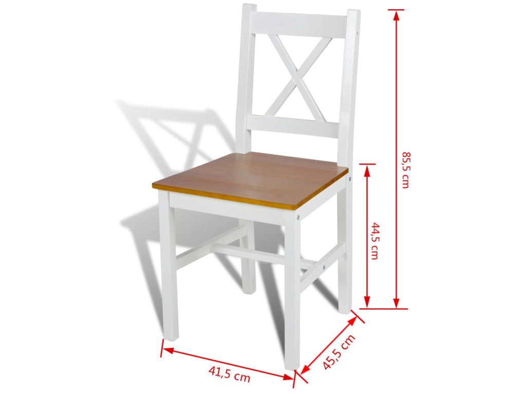 Židle jsou vyrobeny z masivního borového dřeva, což jim dodává stabilitu a trvanlivost. Jídelní židle se díky hladké povrchové úpravě snadno čistí. Jsou ergonomicky tvarované pro větší pohodlí při sezení.