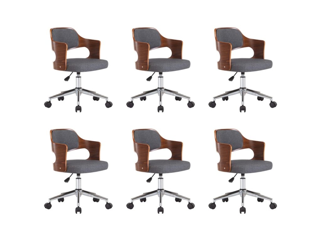 Otočné jídelní židle 6 ks šedé ohýbané dřevo a textil 3054940