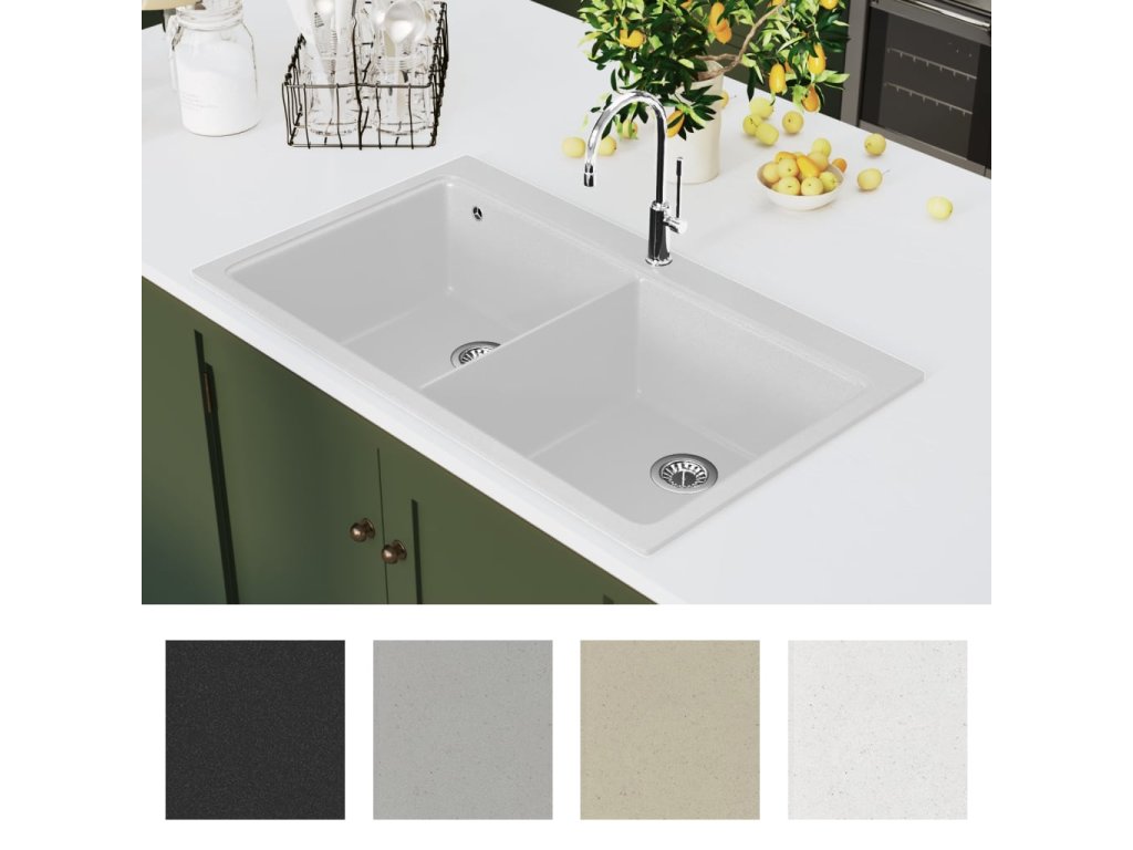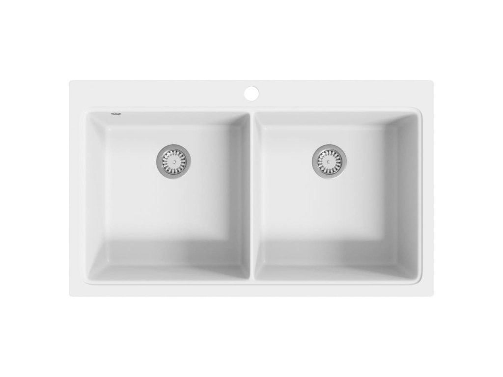 Granitový kuchyňský dvojdřez s horní montáží, bílý 141677