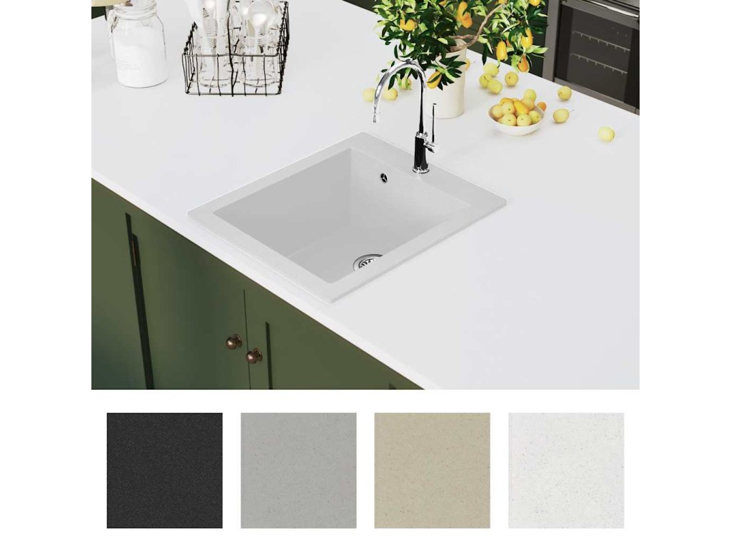 Kuchyňský dřez jednoduchý žula bílý 141674