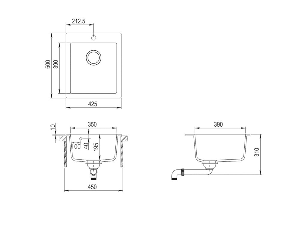 - Rozměry umyvadla: 350 x 390 x 195 mm (D x Š x H)