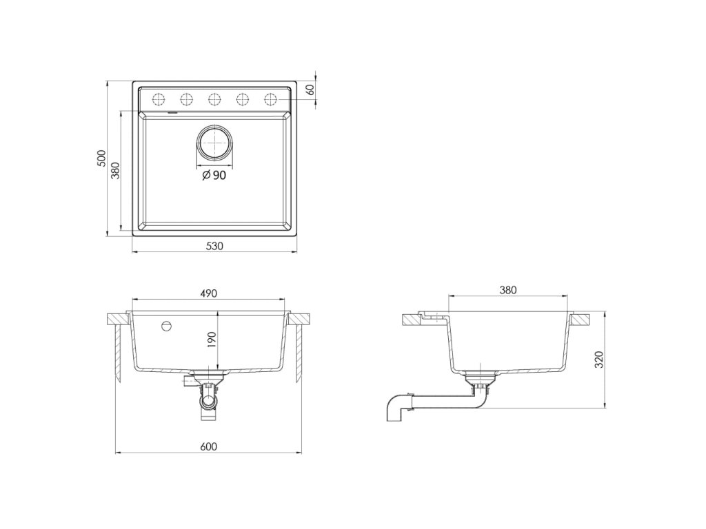 - Rozměry dřezu: 490 x 380 x 190 mm (Š x H x V)