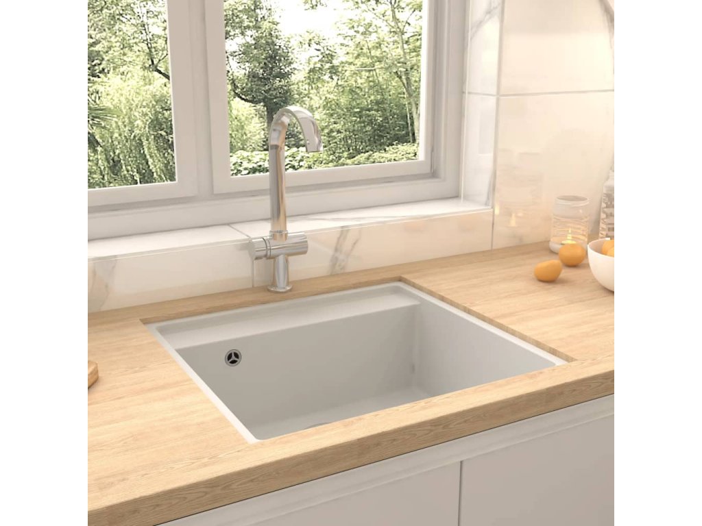 Kuchyňský dřez s přepadem bílý žula 147064