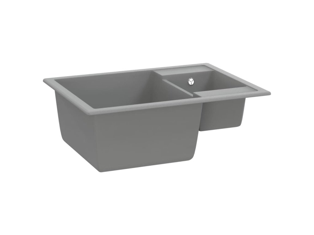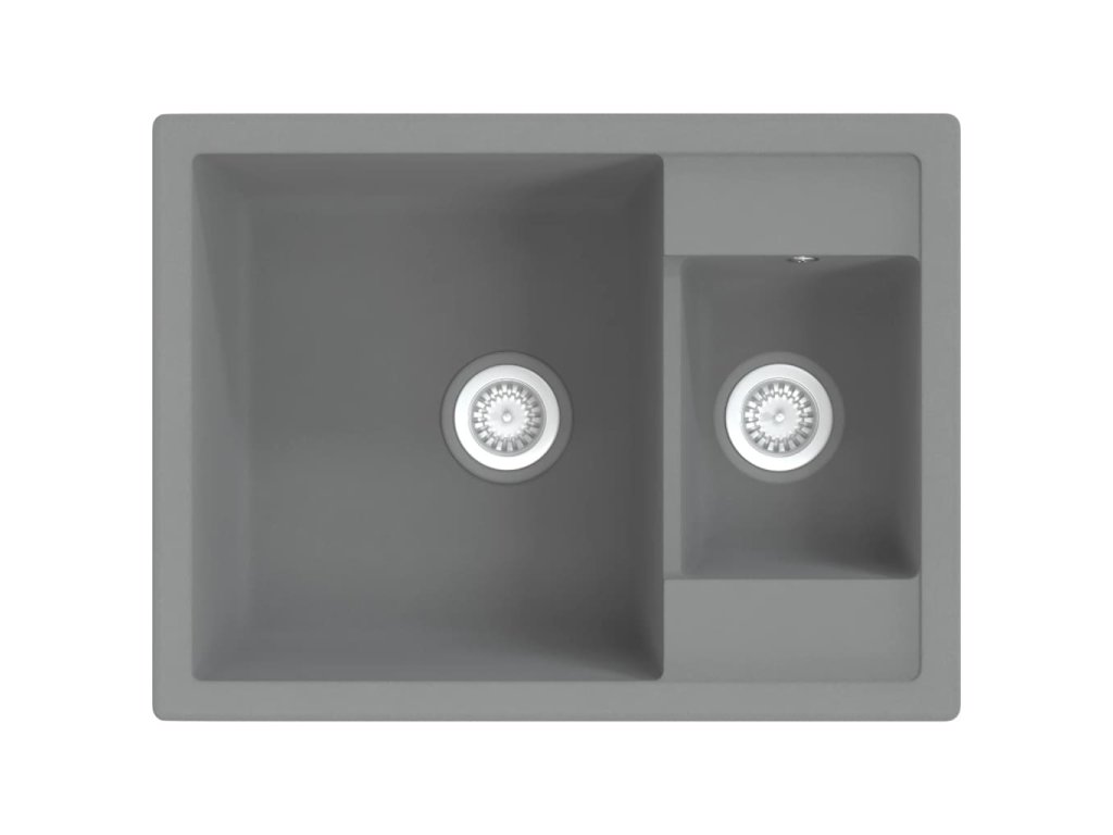 Kuchyňský dřez s přepadem otvorem dvojitý šedý žula 147086