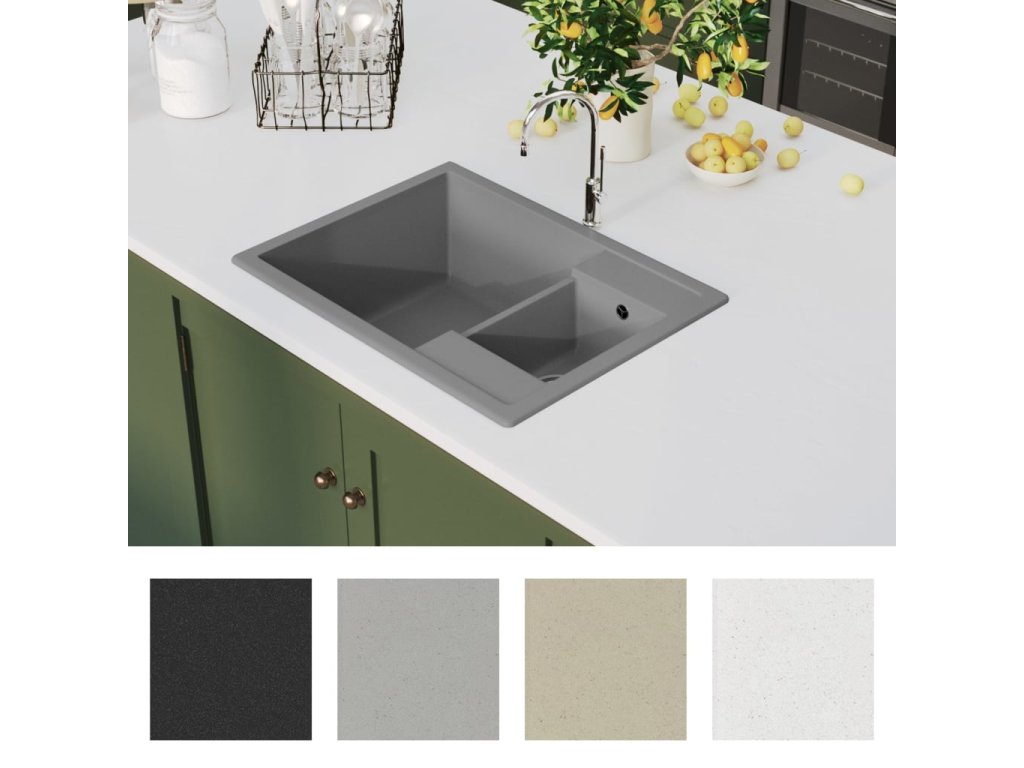 Náš žulový kuchyňský dřez je skvělým nadčasovým doplňkem do vaší kuchyně. Má elegantní design a tvoří ho jeden extra hluboký dřez a jeden malý dřez.
