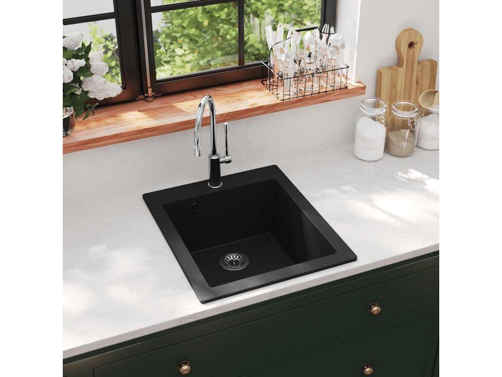 Kuchyňský dřez single žula, černý 141672