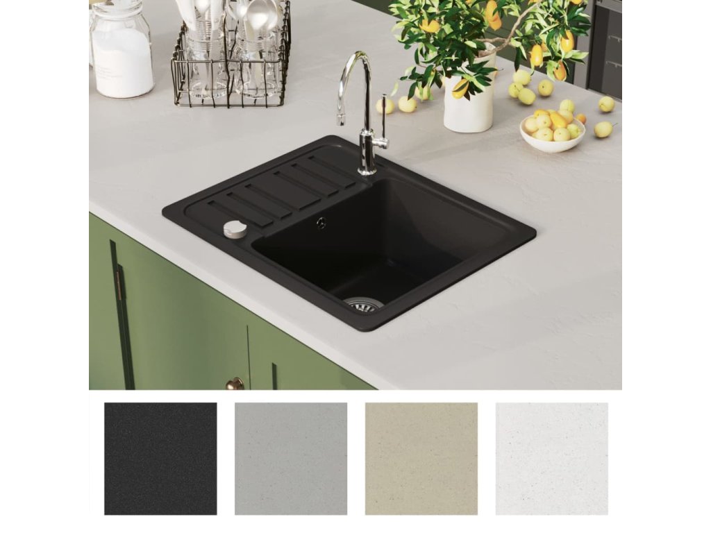 Dřez je zhotovený z vysoce kvalitní žuly, která je odolná vůči teplu, poškrábání a nárazům a snadno se čistí. Umyvadlo je oboustranné, což znamená, že jej lze namontovat na pravou i levou stranu. Přiložené sítko na odpad vám usnadní odstraňování nečistot. Montáž dřezu je snadná.