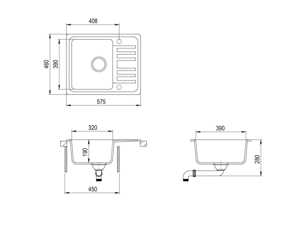 - Rozměry umyvadla: 320 x 390 x 190 mm (D x Š x H)