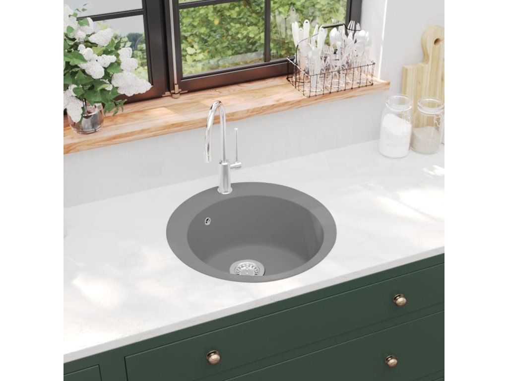 Kuchyňský dřez single žulový kulatý šedý 142957