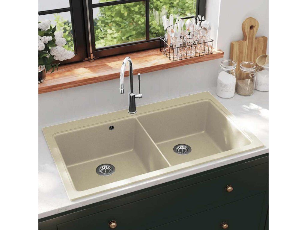 Žulový kuchyňský dřez dvojitý béžový 144851