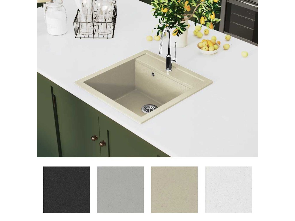 Dřez je zhotoven z vysoce kvalitní žuly, výborně tedy odolává teplu, poškrábání a nárazům a snadno se čistí. Součástí balení je i sítko na odpad pro jednodušší odstraňování nečistot.