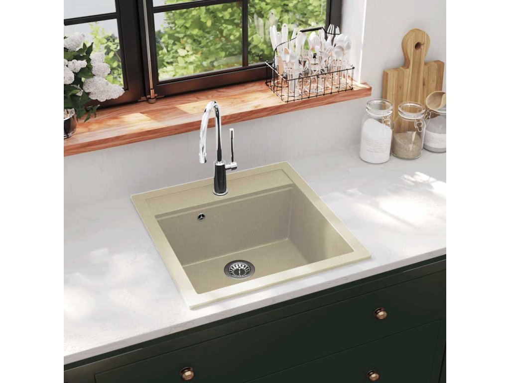 Žulový kuchyňský dřez jednoduchý béžový 144856