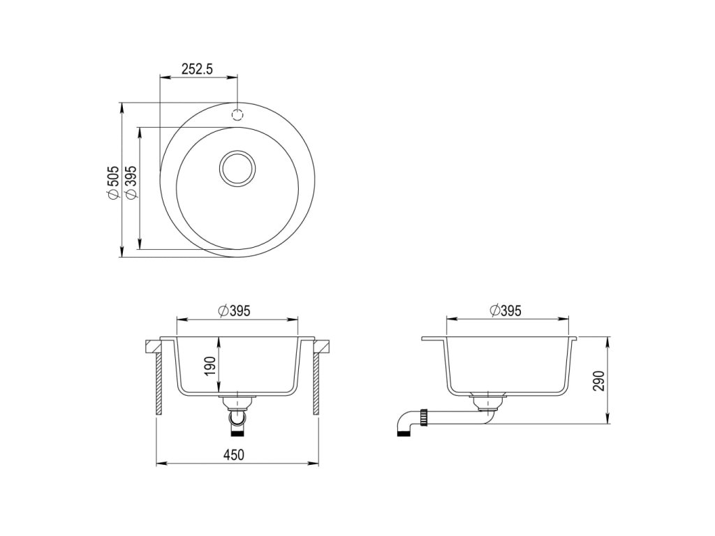 - Rozměry umyvadla: 395 x 395 x 190 mm (D x Š x H)