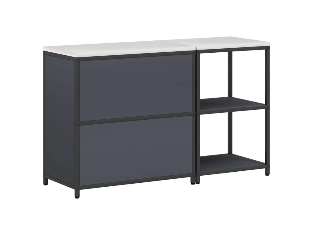 - Pevná ocelová konstrukce: Tato úložná skříňka je z robustní oceli a má minimalistickou strukturu – skvělý pro styl i trvanlivost. Udrží slušnej objem váhy a pomůže vám skladovat různý spotřebiče, nádobí a potraviny. Černý povrch jí dodává sofistikovaný vzhled, co se hodí do moderního interiéru.
