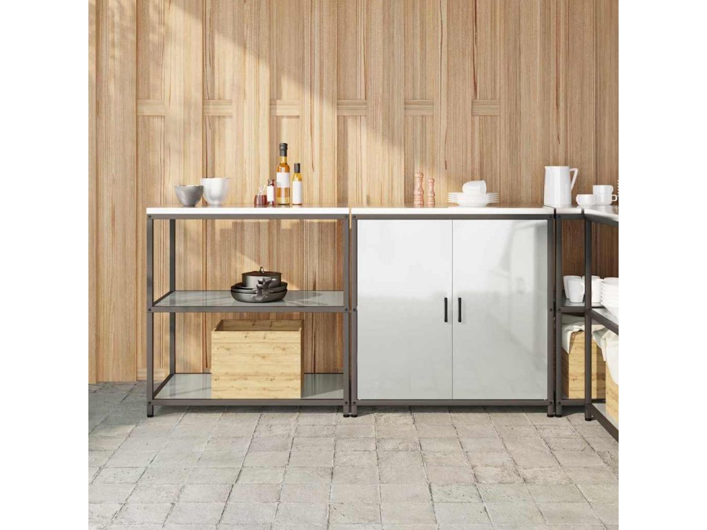 Tahle moderní kuchyňská skříňka je elegantní a funkční doplněk, co vám vylepší organizaci kuchyně. S jasným a moderním stylem, kterej se vyznačuje čistýma liniema a málo ozdobama, fakt se hodí pro moderní domácnosti. Stojí na pevných ocelových nohách, takže je spolehlivá a dlouhověk. Nastavitelné police vám daj dostatek prostoru pro všechno, co potřebujete, a bez problémů se to vejde do stávajícího designu vašeho domova.