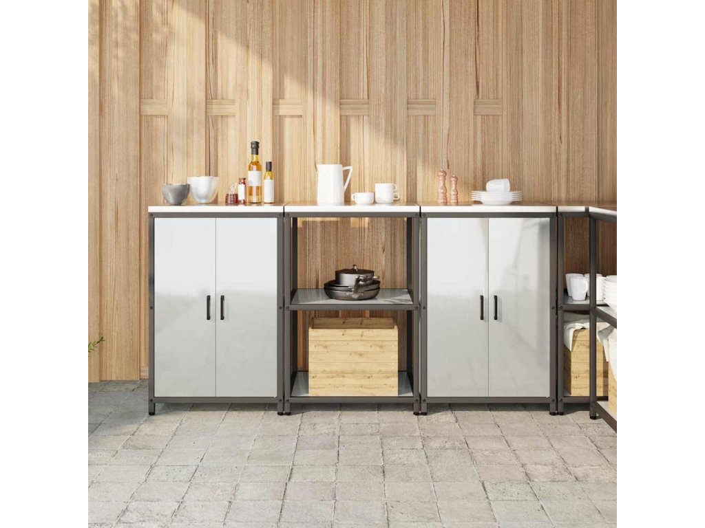 Tato kuchyňská skladovací jednotka spojuje moderní design a praktické funkce pro ty, kteří chtějí mít v kuchyni jak styl, tak užitečnost. Robustní ocelová konstrukce dodává elegantní a současný vibe, perfektní pro ty, co mají rádi jednoduchost a útulný prostor. Její úložné schopnosti jsou skvělým doplňkem pro každou kuchyni.