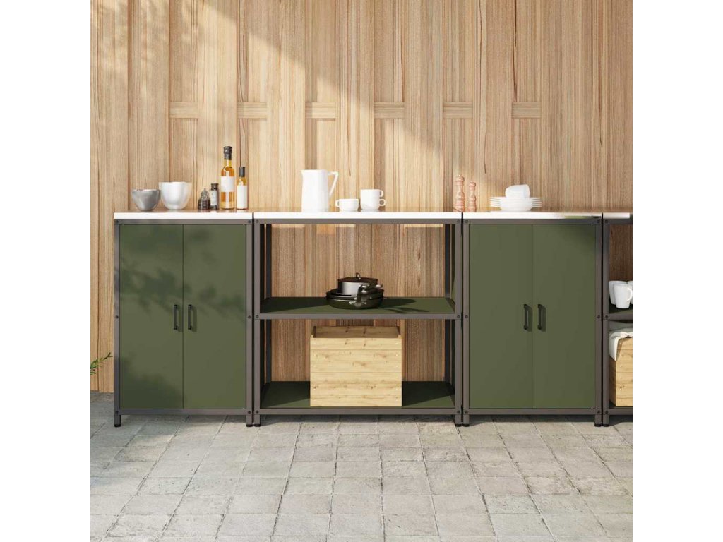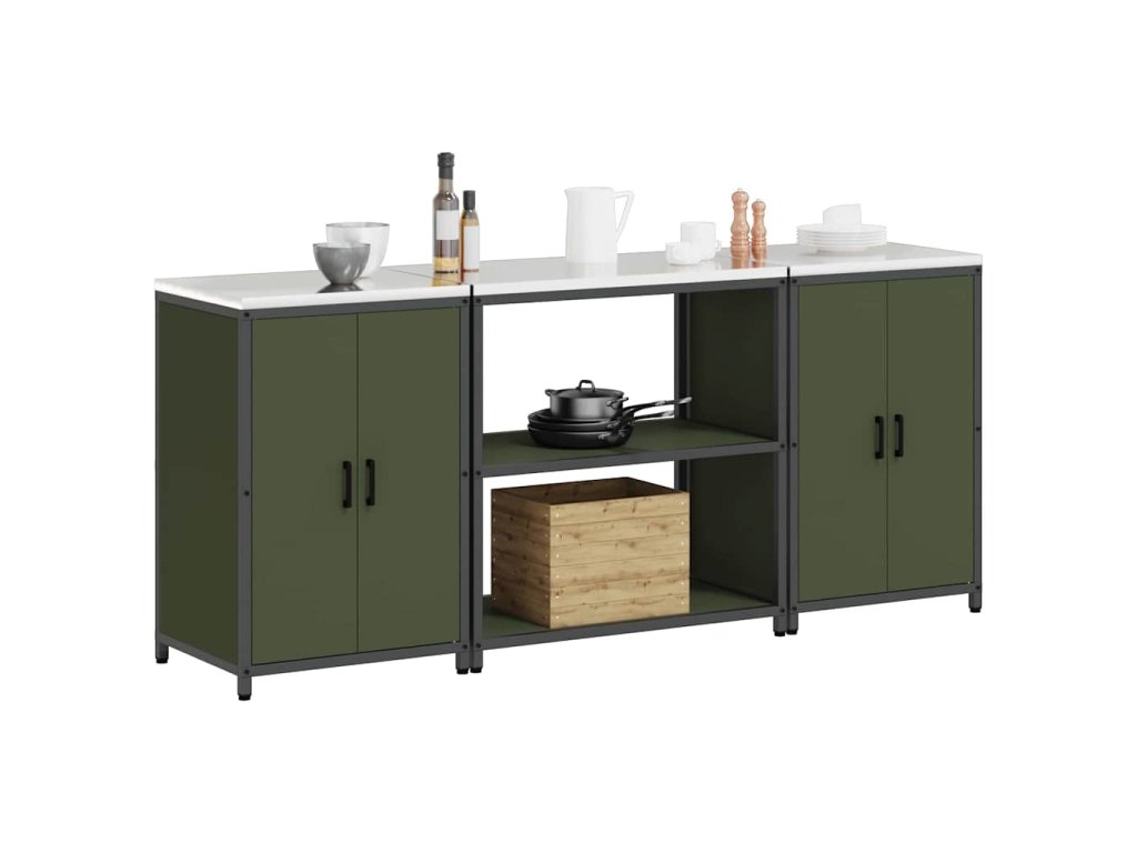 Kuchyňská skladovací sada s policí 3 pcs Olivově zelená Ocel 3392669