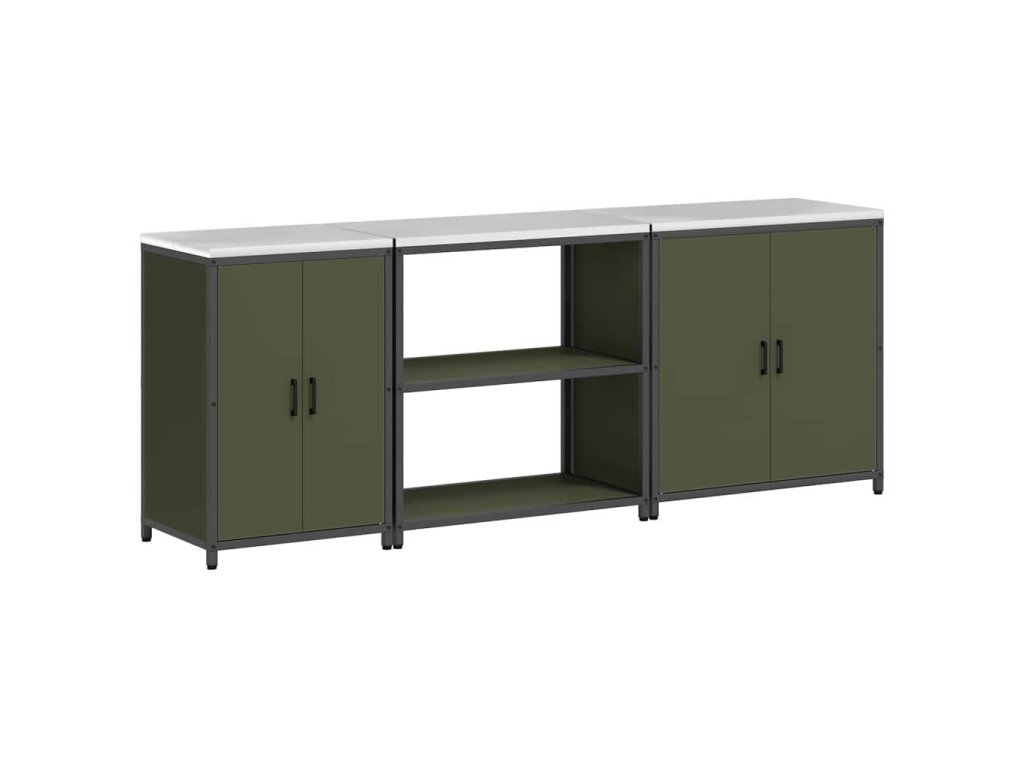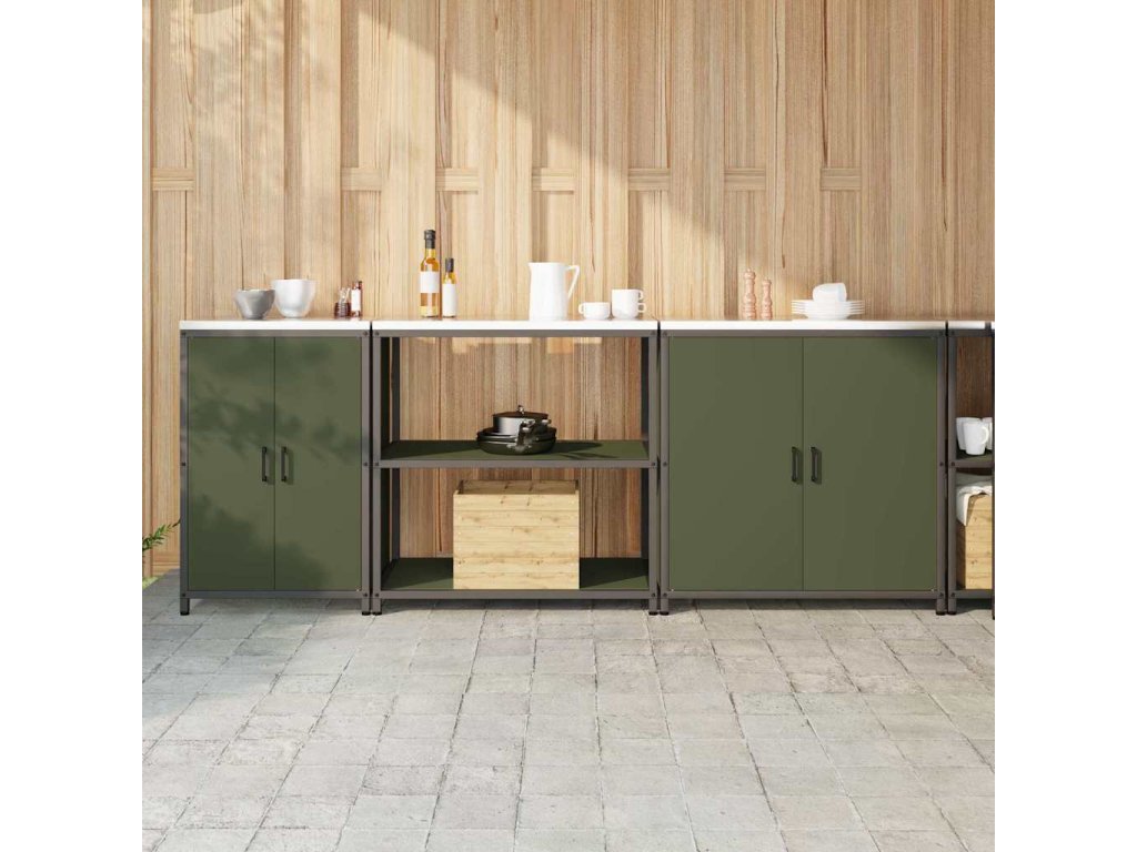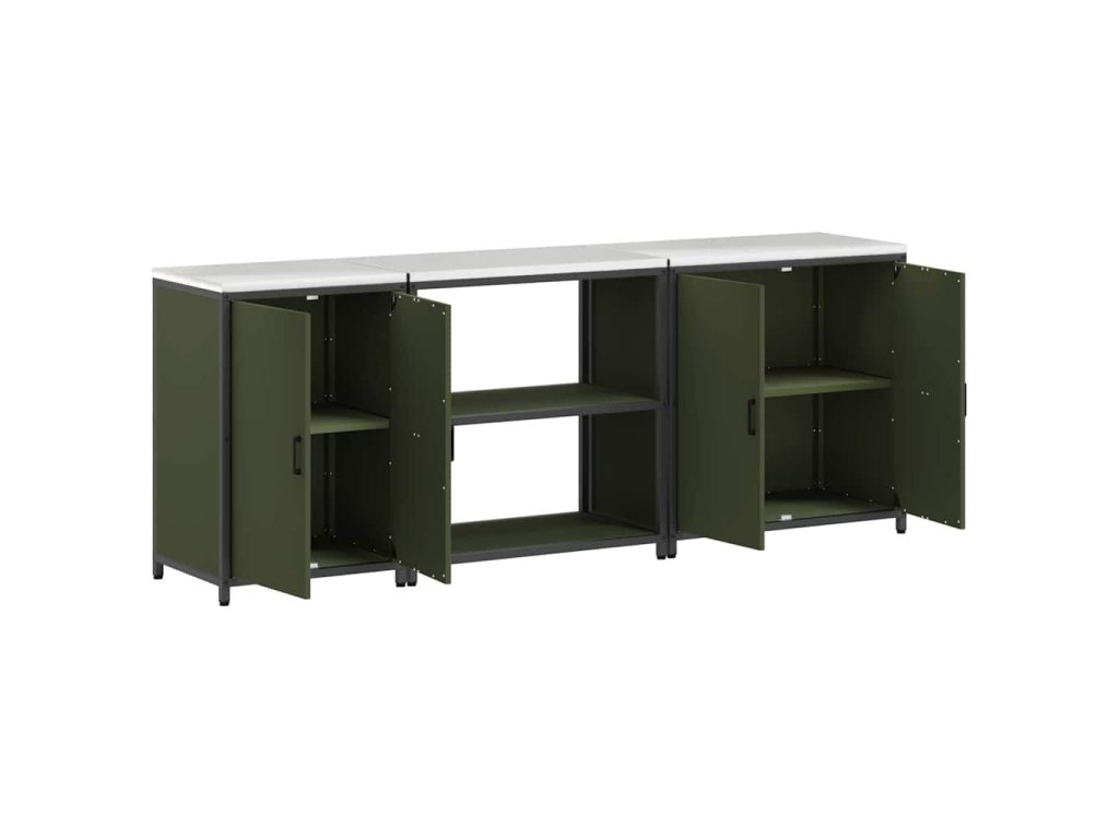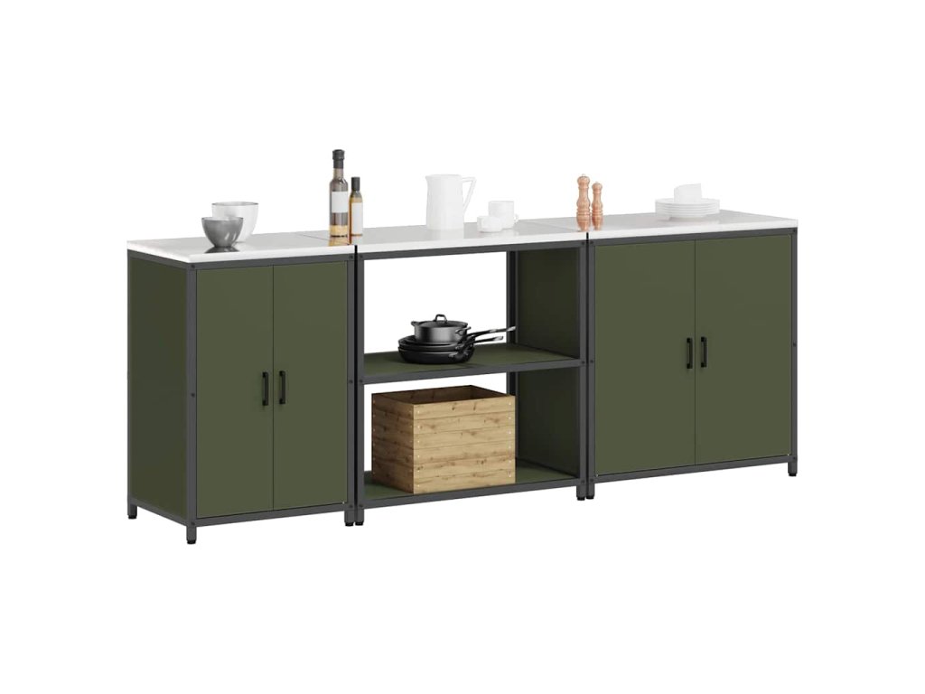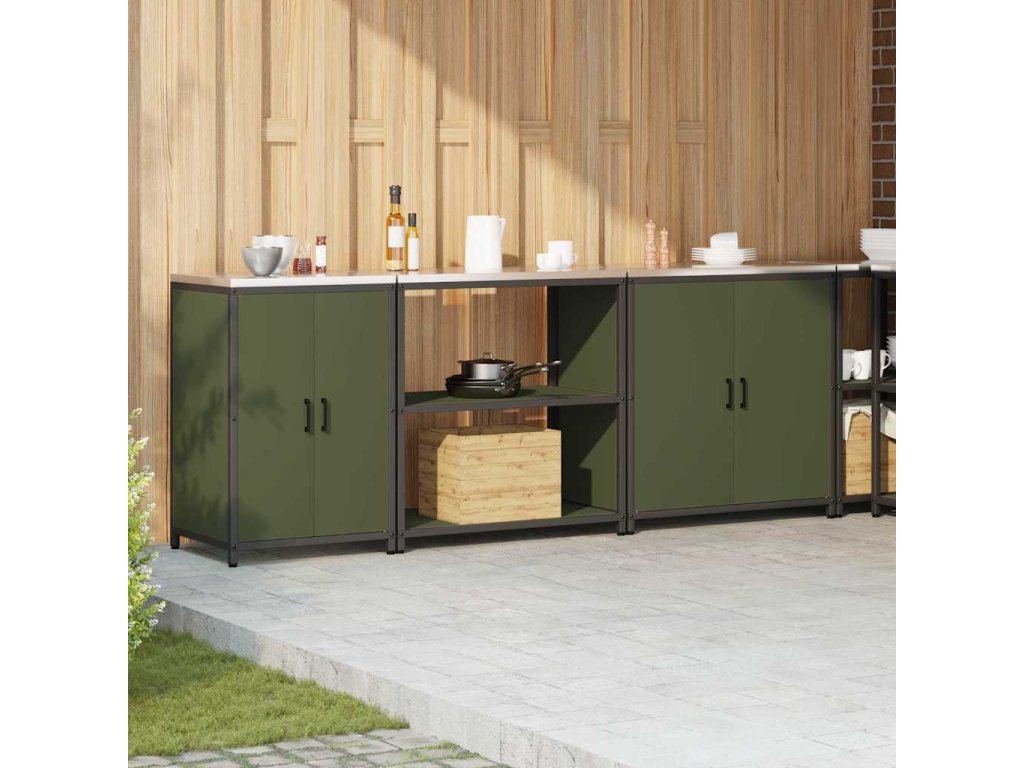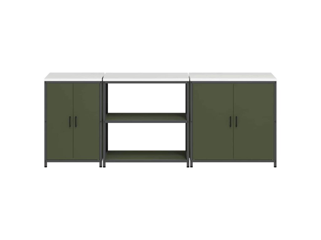 Kuchyňská skladovací sada s policí 3 pcs Olivově zelená Ocel 3392676