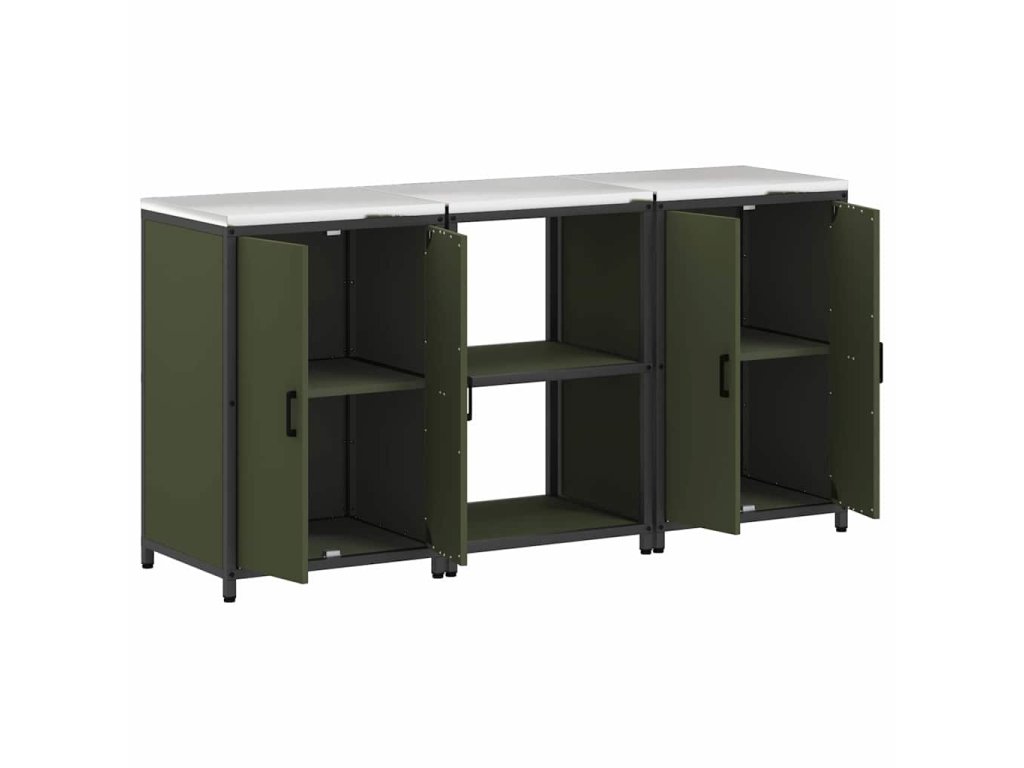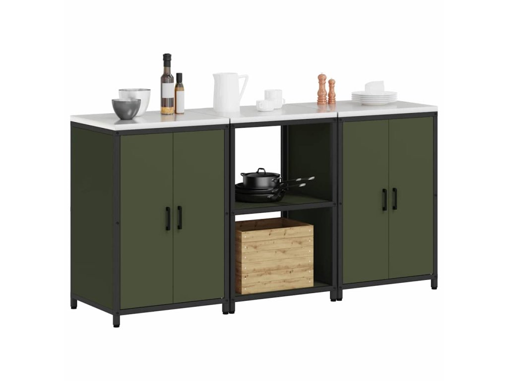 Kuchyňská skladovací sada s policí 3 pcs Olivově zelená Ocel 3392697