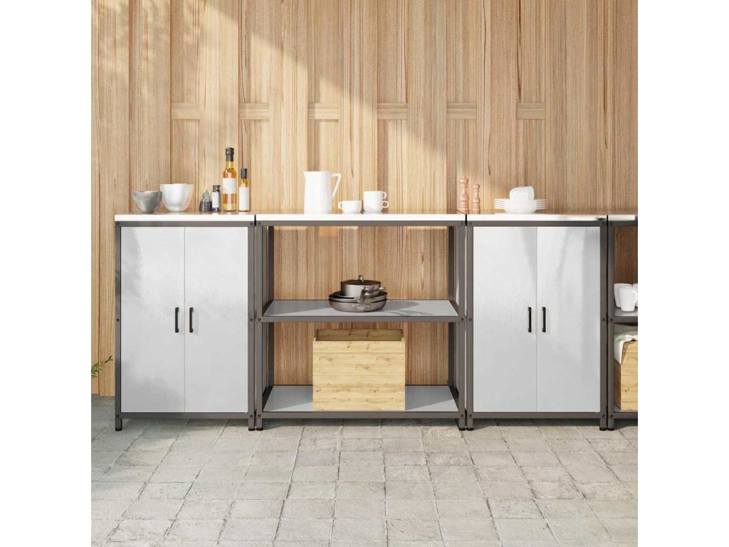 Tato kuchyňská skladovací jednotka spojuje moderní design a praktické funkce pro ty, kteří chtějí mít v kuchyni jak styl, tak užitečnost. Robustní ocelová konstrukce dodává elegantní a současný vibe, perfektní pro ty, co mají rádi jednoduchost a útulný prostor. Její úložné schopnosti jsou skvělým doplňkem pro každou kuchyni.