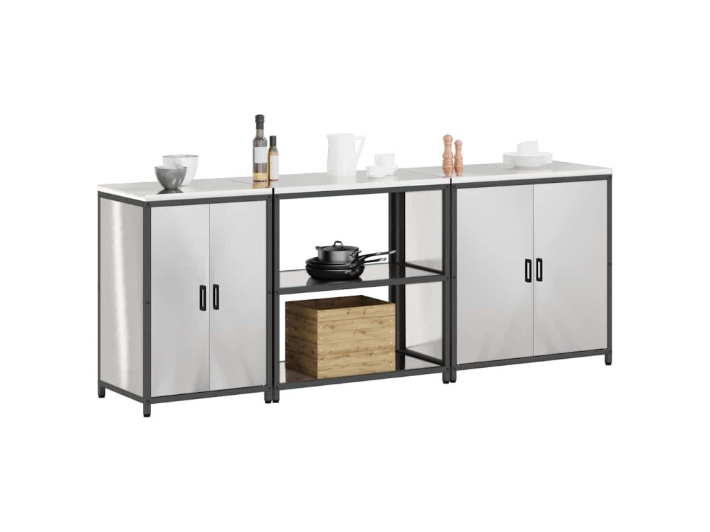 - Zahrnuté komponenty: Skříň má řadu polic a oddělení, které jsou navržené tak, aby splnily různé úložné potřeby — ať už jde o hrnce nebo jídlo. Ocelové policové prvky zajišťují trvanlivost a spolehlivou podporu pro těžké věci. Stabilita je podpořená ocelovým rámem a nohama, plus ocelové dveře nabízejí bezpečné uzavření.