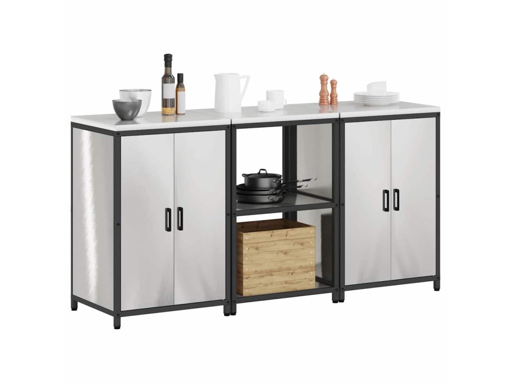 Kuchyňská skladovací sada s policí 3 pcs Stříbrná Nerezová ocel 3392698