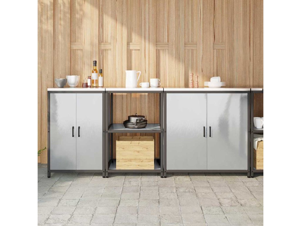 - Zahrnuté komponenty: Skříň má řadu polic a oddělení, které jsou navržené tak, aby splnily různé úložné potřeby — ať už jde o hrnce nebo jídlo. Ocelové policové prvky zajišťují trvanlivost a spolehlivou podporu pro těžké věci. Stabilita je podpořená ocelovým rámem a nohama, plus ocelové dveře nabízejí bezpečné uzavření.