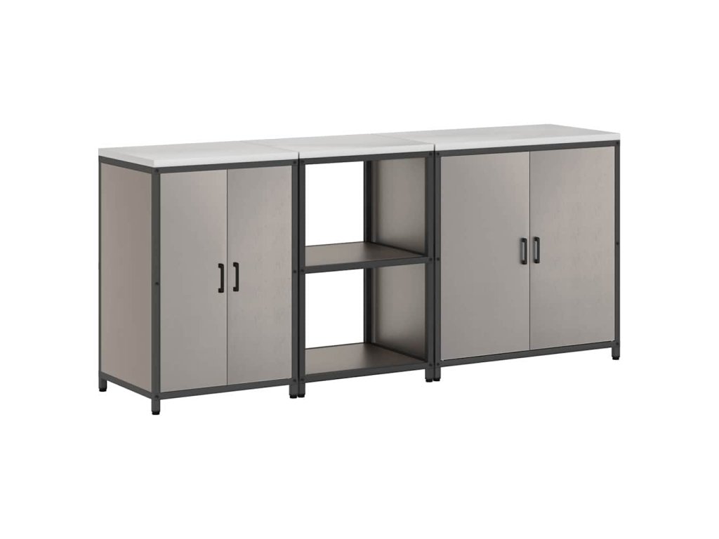 - Nastavitelné nohy: Skříň má čtvercové, práškově lakované ocelové nohy s nivelátory, které se vyrovnávají s nerovnostmi podlahy. To znamená, že bude stabilní, i když máte rušnou kuchyň nebo plnou garáž.