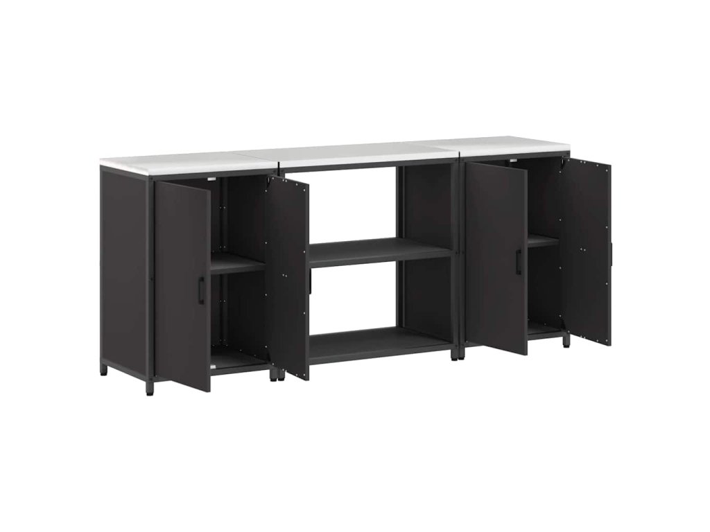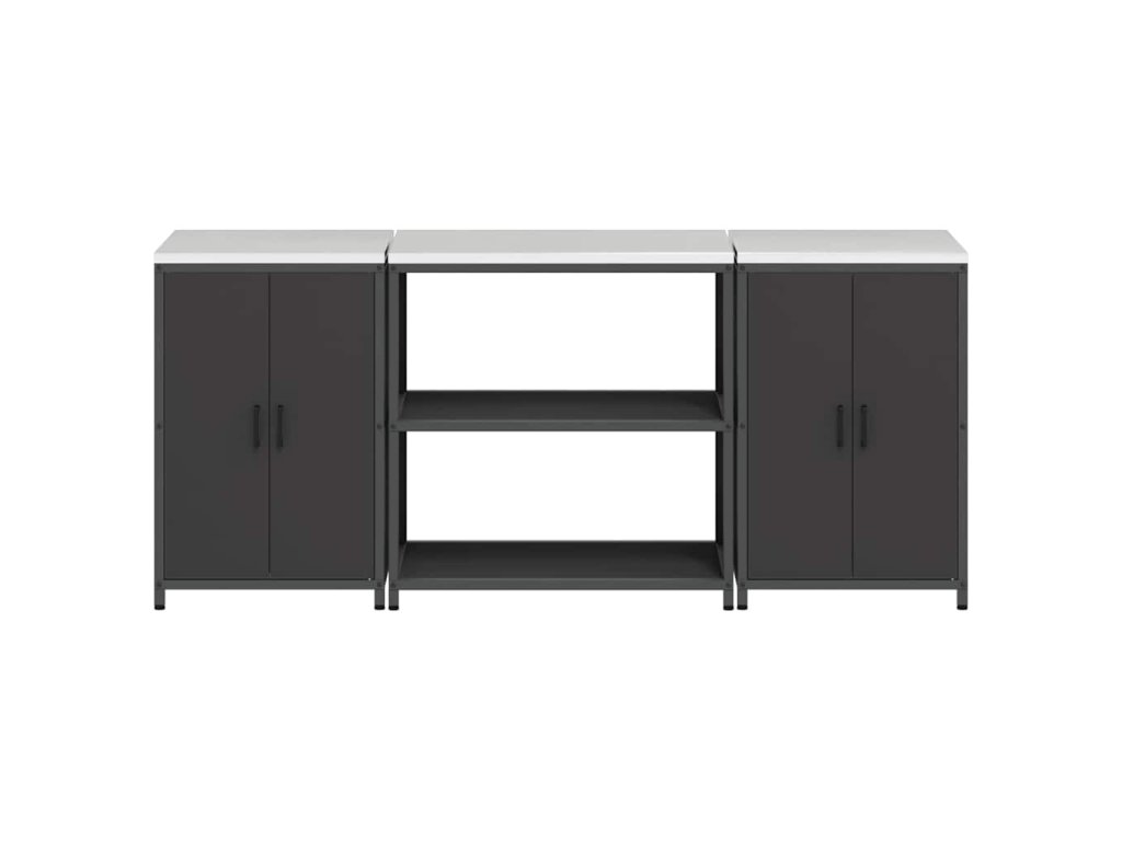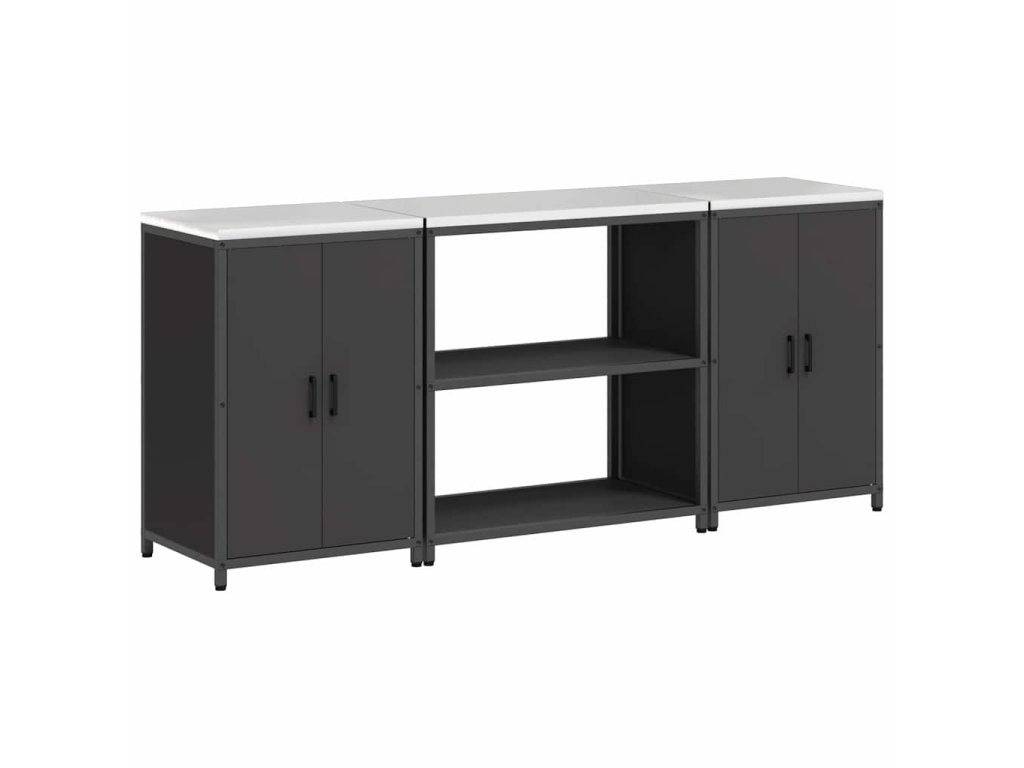 Kuchyňská skladovací sada s policí s úložištěm 3 pcs Černá Ocel 3392666