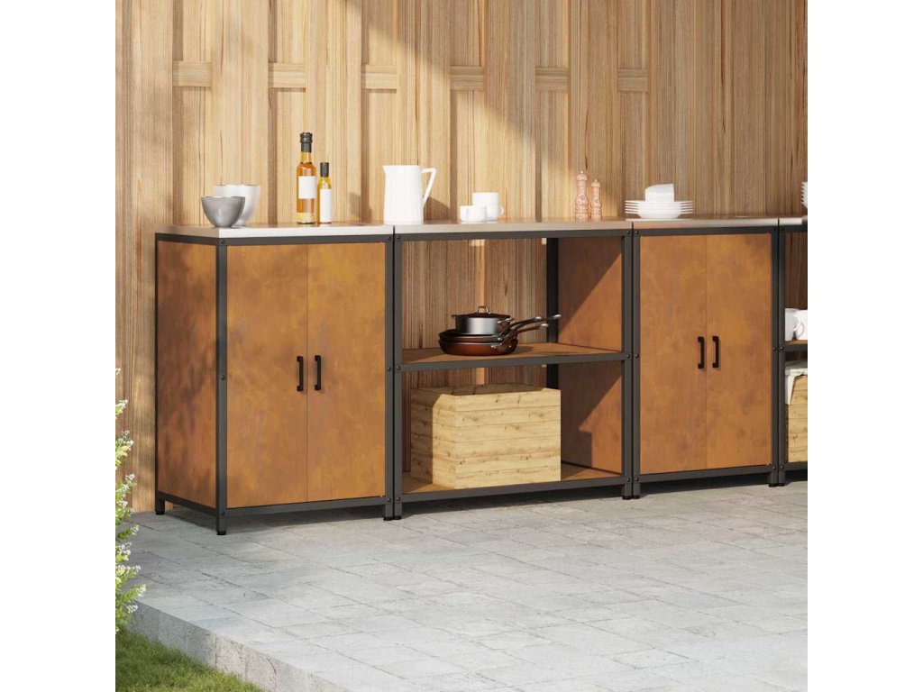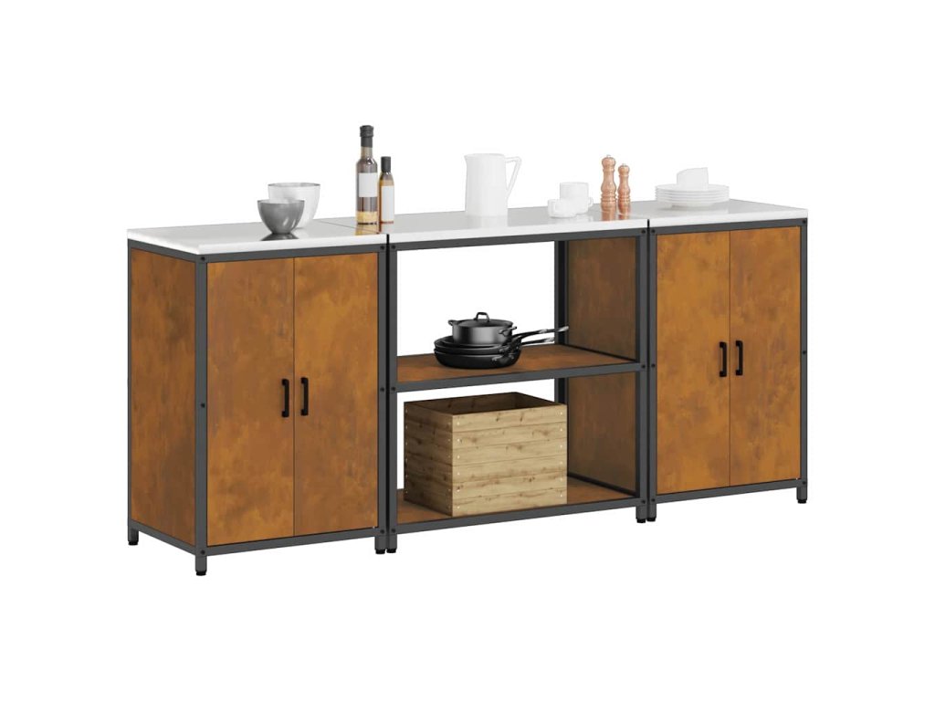 Kuchyňská skladovací sada s policí se dveřmi 3 pcs Rezavá Ocel 3392672
