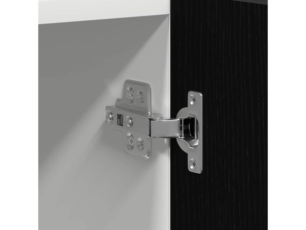 - Materiály: Skříň je z kompozitního dřeva, což zajišťuje funkčnost a dlouhou životnost. Kompozitní dřevo je vybráno pro svou odolnost vůči běžnému opotřebení a jeho hladký povrch dodává eleganci bez zbytečných ozdob.