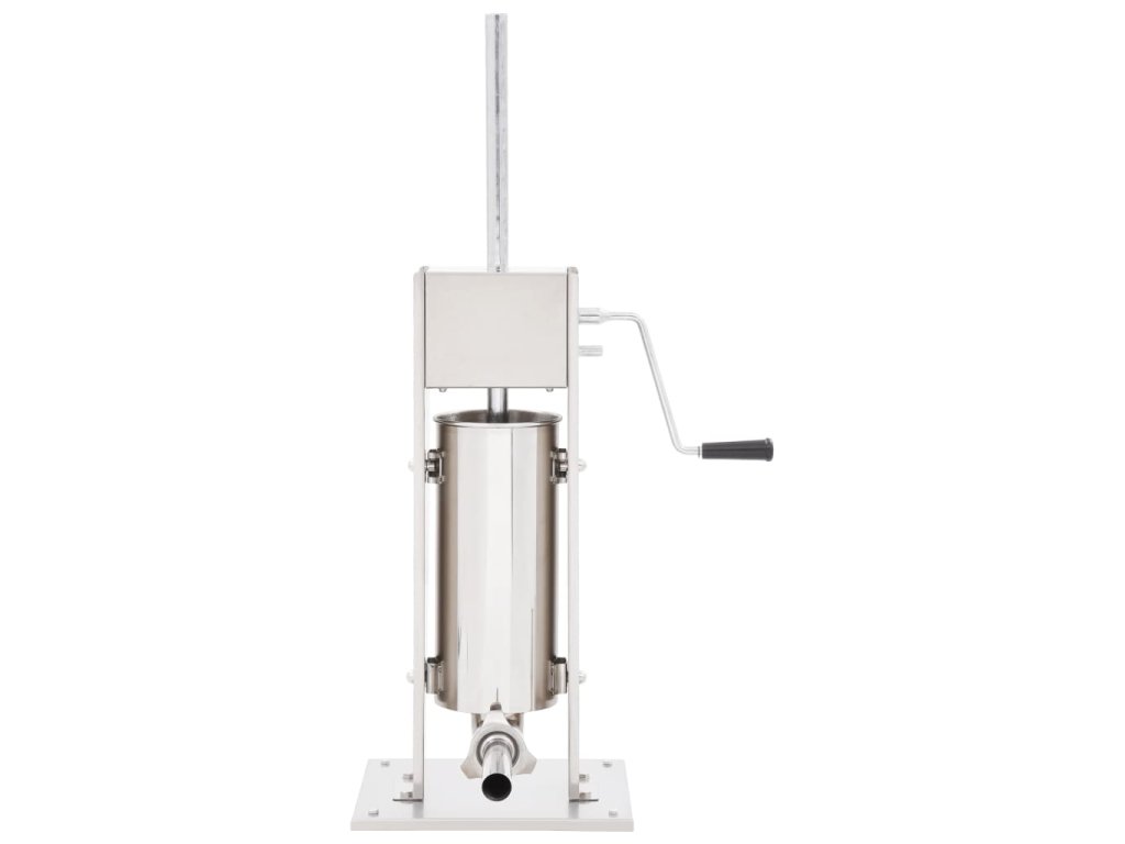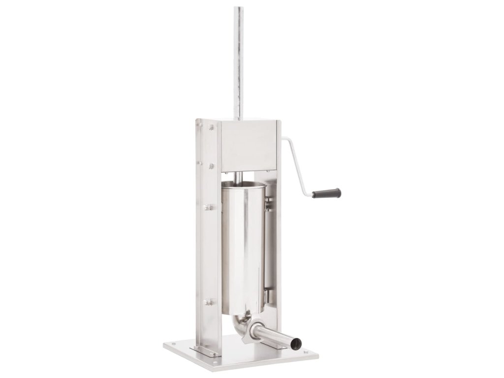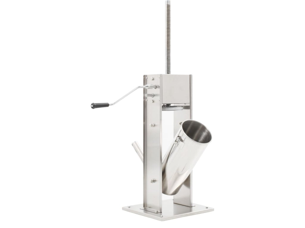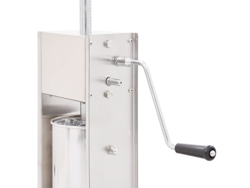 Tato nerezová plnička klobás je vybavená 5litrovým zásobníkem, který lze vyklopit či vyjmout pro pohodlnější plnění masem nebo čištění. Ruční klika pohybuje pístem, který protlačí maso skrz plnicí nástavec. Součástí balení jsou také 3 plnicí nástavce v různých velikostech pro uspokojení vašich nejrůznějších potřeb.