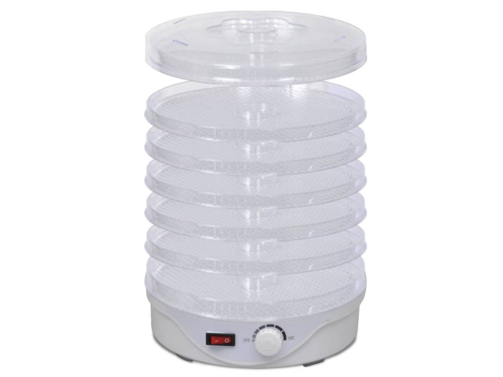 Tato sušička potravin s 6 průsvitnými tácy bude skvělým doplňkem vaší kuchyně. Díky této sušičce potravin vysušíte širokou škálu čerstvých potravin, jako je ovoce, zelenina, houby a bylinky a vyrobit tak zdravé svačiny pro vaši rodinu.