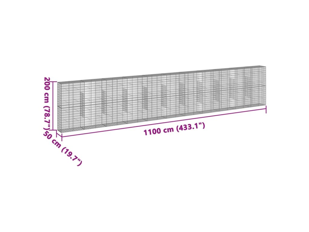 Gabionový koš s víkem 1 100 x 50 x 200 cm pozinkované železo 3295176