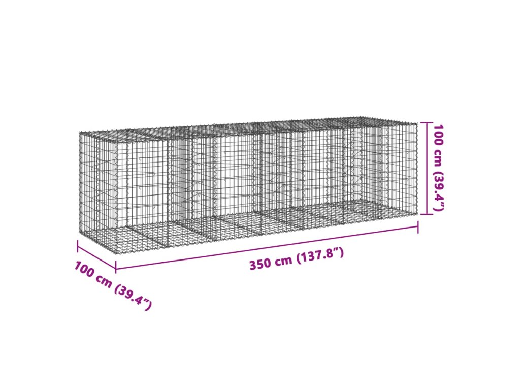 Gabionový koš s víkem 350 x 100 x 100 cm pozinkované železo 3295195