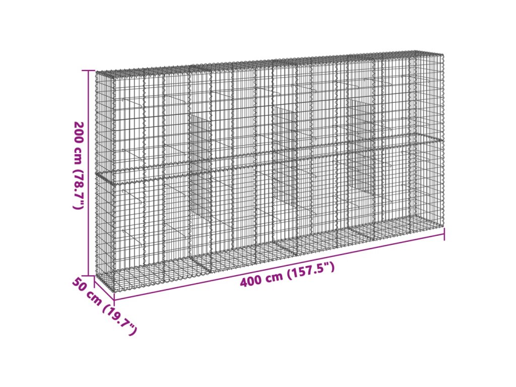 Gabionový koš s víkem 400 x 50 x 200 cm pozinkované železo 3295169