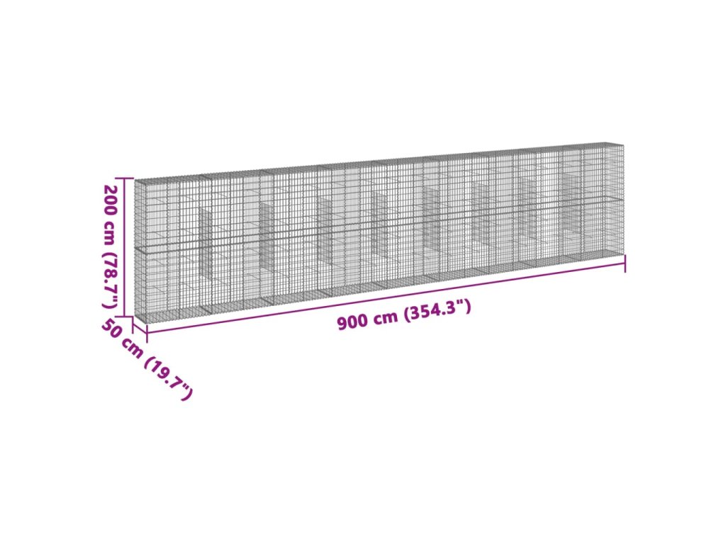 Gabionový koš s víkem 900 x 50 x 200 cm pozinkované železo 3295174