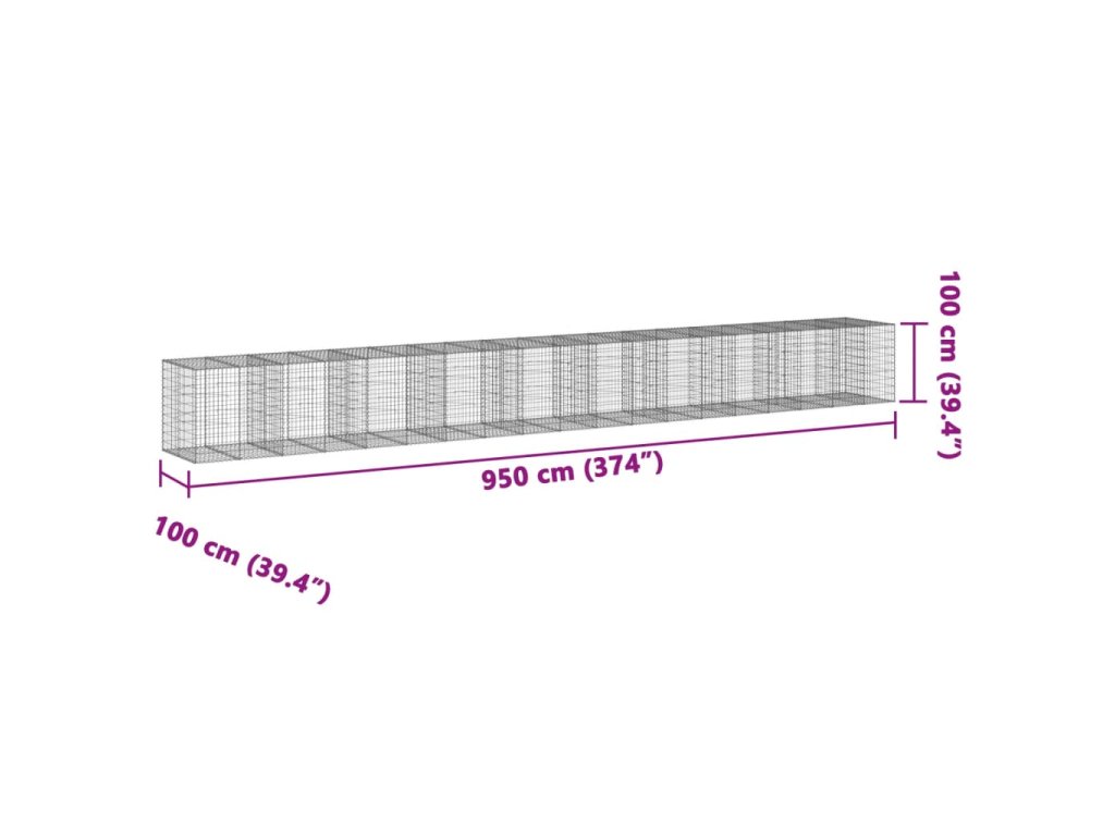 Gabionový koš s víkem 950 x 100 x 100 cm pozinkované železo 3295207