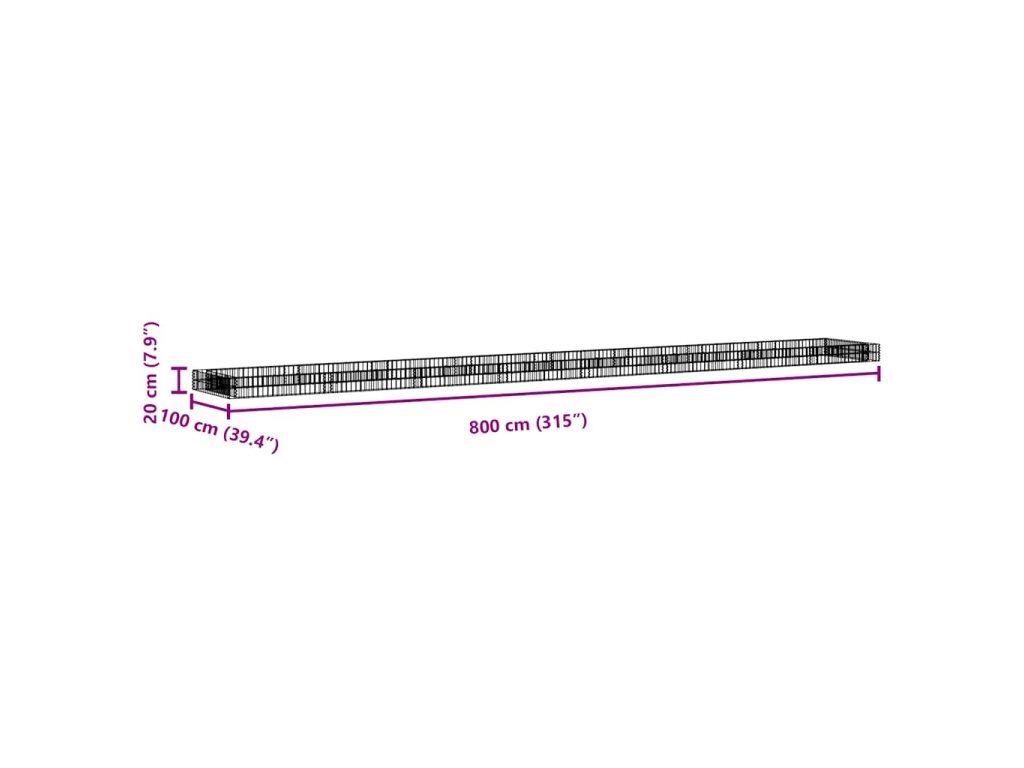 Gabionový vyvýšený záhon pozinkovaná ocel 800 x 100 x 20 cm 151317