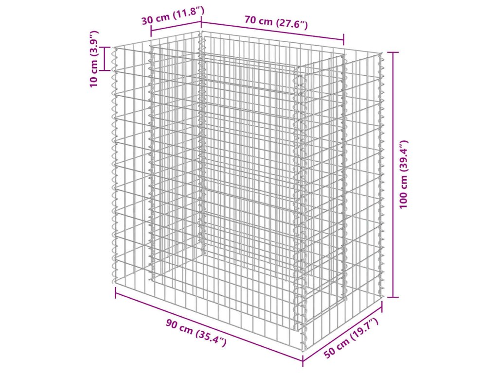 Robustní gabion je určen k tomu, aby byl naplněn kameny nebo štěrkem. Je vyrobený z nerezavějící pozinkované oceli, která nepodléhá povětrnostním vlivům, takže vysoký záhon je velmi stabilní a odolný. Síťová mřížka je tvořená svislými a vodorovnými dráty, které jsou ve všech spojích svařené, aby se tak zajistila mimořádná pevnost.