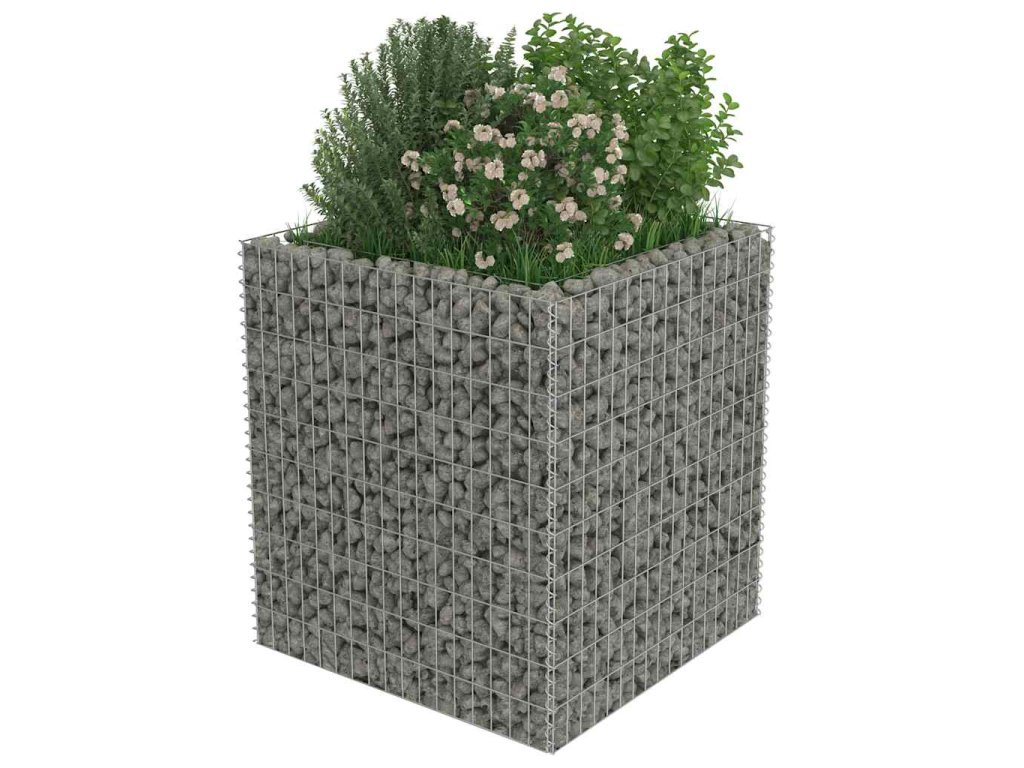 Robustní gabion je určen k tomu, aby byl naplněn kameny nebo štěrkem. Je vyrobený z nerezavějící pozinkované oceli, která nepodléhá povětrnostním vlivům, takže vysoký záhon je velmi stabilní a odolný. Síťová mřížka je tvořená svislými a vodorovnými dráty, které jsou ve všech spojích svařené, aby se tak zajistila mimořádná pevnost.